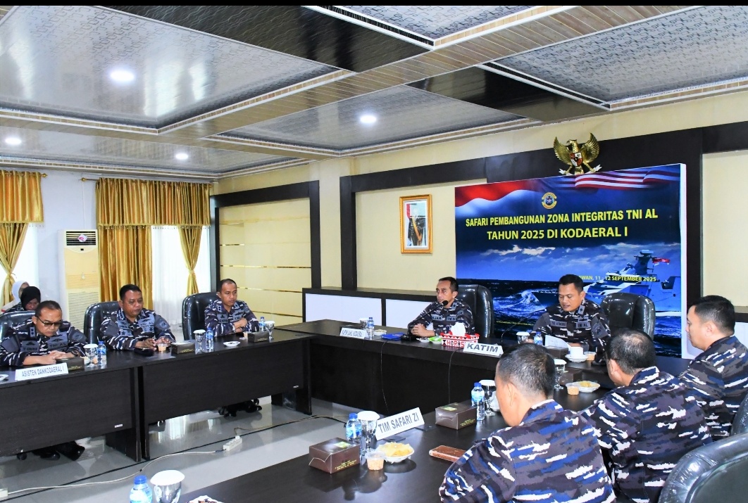 TNI AL, Belawan,Swarantara.com-Komandan Komando Daerah Angkatan Laut I (Dankodaeral I) Laksamana Muda TNI Deny Septiana, S.I.P., M.A.P., yang diwakili Kapok Sahli Kodaeral I Kolonel Laut (P) Fajar Tri Rohadi, S.E., memimpin Penutupan Safari Pembangunan Zona Integritas TNI Angkatan Laut Tahun 2025, bertempat di Ruang R. Mulyadi Mako Kodaeral I, Jalan Serma Hanafiah No. 01 Belawan, Sumatera Utara, Jumat (12/09/2025).