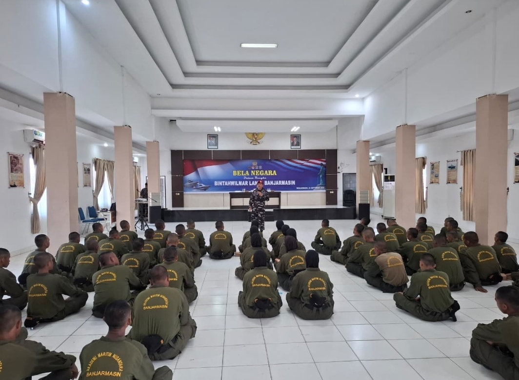 TNI AL, BAnjarmasin,Swarantara.com-Bertempat di Gedung Mustafa Ideham Lanal Banjarmasin, Kota Banjarmasin, Provinsi Kalsel, telah dilaksanakan kegiatan Sosialisasi Bela Negara oleh Tim Wasev Steral kepada 50 Taruna/Taruni Akademi Maritim Nusantara Banjarmasin yang disampaikan oleh Paban III Tahwil Steral Kolonel (Mar) Sungguh B. Manurung, Rabu (25/09/2025).