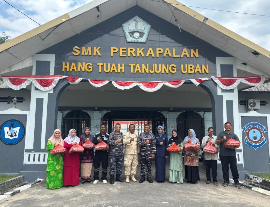 TNI AL, Bintan,Swarantara.com-Dalam rangka HUT Ke-80 TNI Tahun 2025 dan sebagai bentuk kepedulian dan memberikan apresiasi kepada Guru Pendidik, Komandan Lanal Bintan Kolonel Laut (P) Dr. Eko Agus Susanto, S.E., M.M., menyerahkan paket sembako kepada Guru TK Hang Tuah Tanjung Uban, TK Hang Tuah 2 Tanjungpinang dan SMK Perkapalan Yayasan Hang Tuah Tanjung Uban, bertempat di Mako Lanal Bintan dan SMK Perkapalan Tanjung Uban, Senin (29/09/2025).