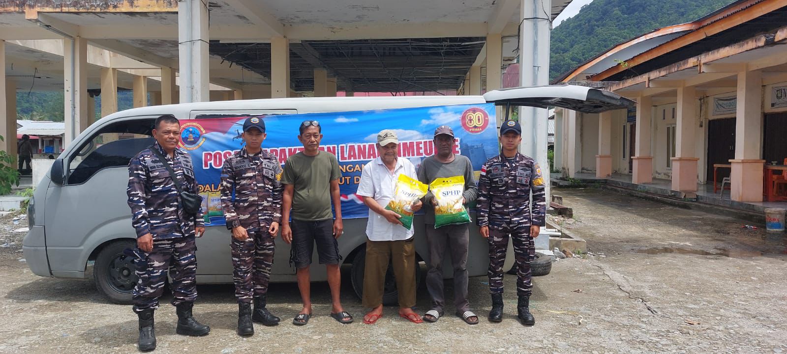 Komandan Pos TNI Angkatan Laut (Posal) Tapak Tuan Letda Laut (T) Iwan Setiawan beserta seluruh personel melaksanakan kegiatan Penyaluran Beras Stabilisasi Pasokan dan Harga Pangan (SPHP) melalui program Gerakan Pangan Murah (GPM) yang diselenggarakan di wilayah Kabupaten Aceh Selatan, Sabtu (4/10/2025).