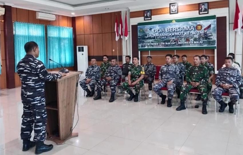 Dalam rangka memperingati Hari Ulang Tahun (HUT) Ke-80 Tentara Nasional Indonesia (TNI) Tahun 2025, Unsur TNI Provinsi Bengkulu menyelenggarakan acara Doa Bersama dengan tema “TNI Prima – TNI Rakyat – Indonesia Maju” yang beragama Islam bertempat di Masjid Al-Mubarok Mako Lanal Bengkulu dan yang beragama Kristen di Balai Sudirman Makorem 041/Gamas Bengkulu, Sabtu (04/10/2025).