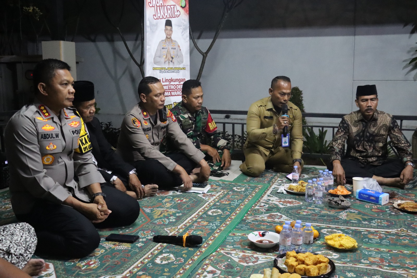 Polres Metro Depok bersama Polsek Bojongsari menggelar acara Jaga Jakarta dan Ngopi Kamtibmas di Aula RW Perumahan Citra Lake Cluster Green Victoria, Sawangan, Depok, Senin (6/10) malam.
