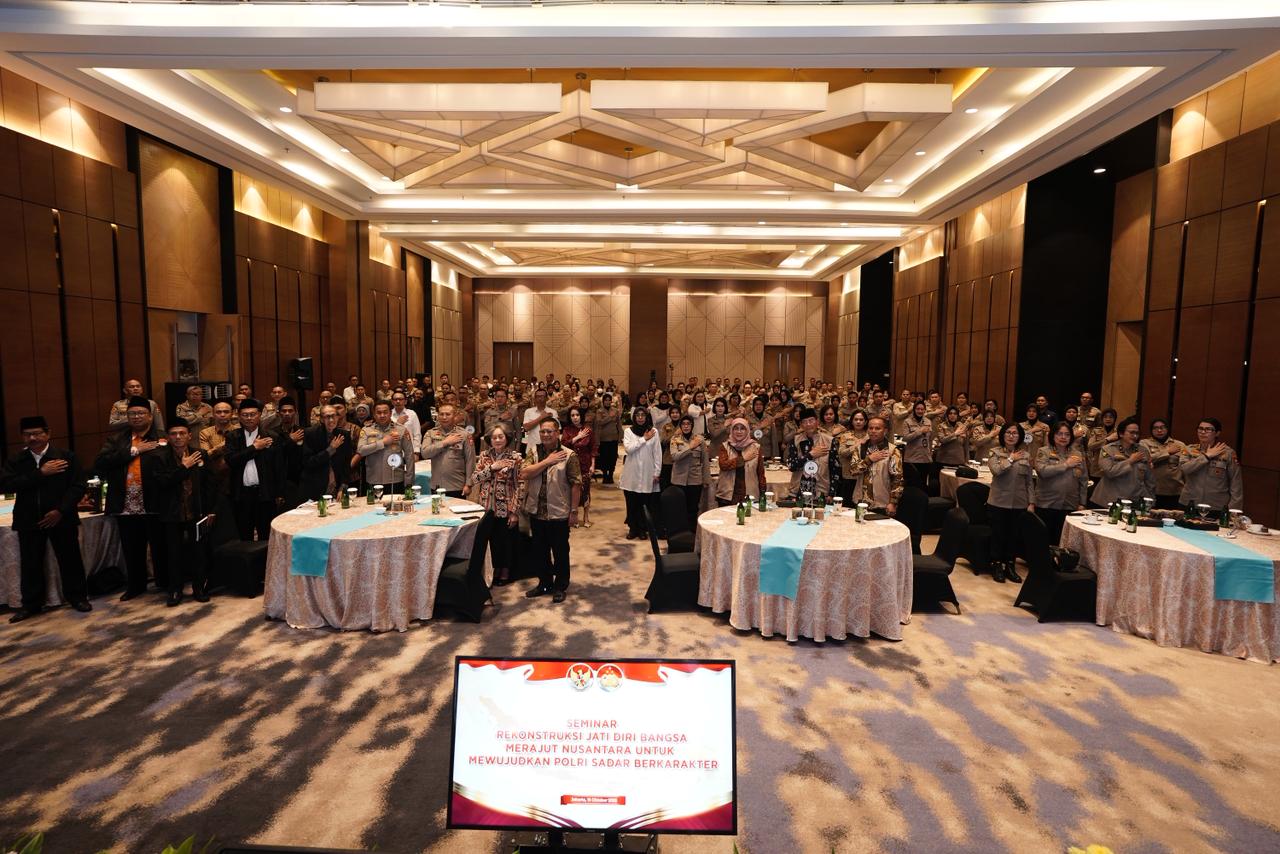 Polri menyelenggarakan seminar bertajuk “Rekonstruksi Jati Diri Bangsa Merajut Nusantara untuk Mewujudkan Polri Sadar Berkarakter” untuk mencetak sumber daya manusia (SDM) Polri yang unggul dan berkarakter. Kegiatan yang berlangsung di Jakarta Selatan ini, merupakan upaya strategis Polri untuk memperkuat rasa nasionalisme yang dijiwai jati diri bangsa di tengah dinamika tarik menarik geopolitik internasional.