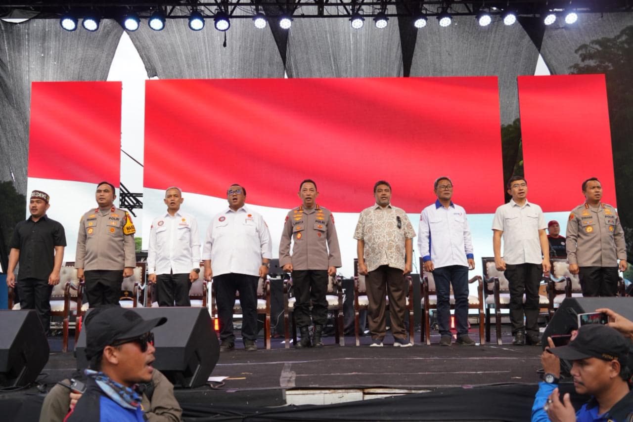 Brimob Polda Metro Jaya melaksanakan pelayanan dalam kegiatan Apel Akbar Kebangsaan Buruh Indonesia yang berlangsung di Jababeka Botanical Garden, Cikarang Timur, Kabupaten Bekasi. Ribuan buruh dari wilayah Bekasi dan Karawang hadir dalam kegiatan yang mengusung semangat persatuan serta komitmen menjaga keutuhan NKRI.