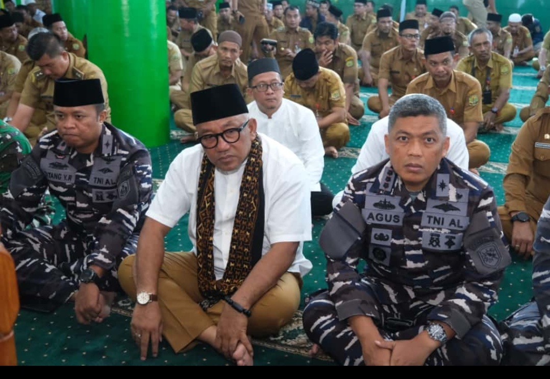 TNI AL, Bintan,Swarantara.com-Komandan Lanal Bintan Kolonel Laut (P) DR. Eko Agus Susanto, S.E., M.M., menghadiri acara pelaksanaan Sholat Tasbih Sempena Peringatan Hari Jadi Ke-24 Otonom Kota Tanjungpinang Tahun 2025, bertempat di Masjid Besar Al-Huda, Jalan Lampu Merah Senggarang, Kota Tanjungpinang, Senin (20/10/2025).