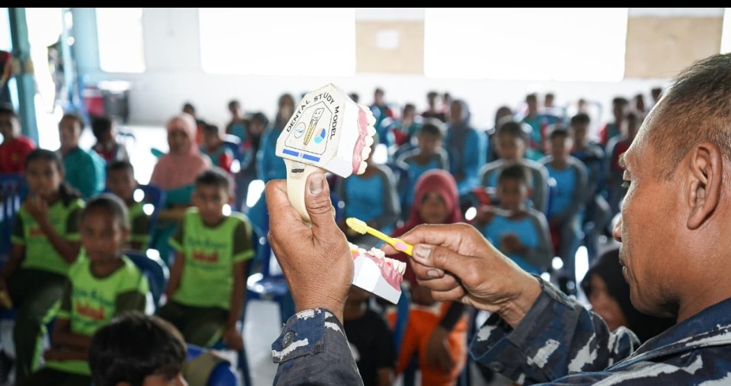 TNI AL, Ambon,Swarantara.Peduli kesehatan gigi dan mulut masyarakat Desa Opin, Kodaeral IX melaksanakan Penyuluhan Kesehatan Gigi dan Mulut di Gedung Serbaguna Negeri Opin, Kecamatan Seram Utara, Kabupaten Maluku Tengah, Jumat (14/11/2025).