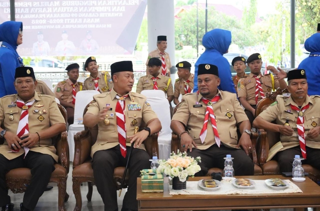 TNI AL, Siak,- Bertempat di Aula Datuk Empat Suku Rumah Rakyat Kediaman Bupati Siak, Jalan Raja Kecik, Kelurahan Kampung Rempak, Kabupaten Siak, Komandan Pangkalan TNI Angkatan Laut Dumai Kolonel Laut (P) Abdul Haris, S.E., M.M.D.S., didampingi Ketua Cabang 4 Daerah Kodaeral l Gabungan Jalasenastri Koarmada RI Ny. Dewi Abdul Haris melantik Pengurus Majelis Pembimbing dan Pimpinan Satuan Karya Bahari Kwartir Cabang 09 Gerakan Pramuka Siak masa Bakti 2023-2028, Minggu (23/11/2025).